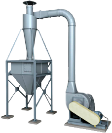 Это составной модуль или самостоятельный аппарат для и инерционно-центробежной очистки воздуха или иных газовых смесей от сухих, неслипающихся (кроме талька и золы), твердых частиц крупной и средней дисперсности (> 10-20 µm). Используется как обособленный пылеуловитель, так и в виде первой ступени грубой очистки в системах и установках тонкой фильтрации газов. Циклон представляет собой вертикальную колонну круглого сечения, низ которой, как правило, конически сужается (цилиндроконическая форма); в нижней же части обычно располагается и патрубок пылевого выпуска, через который собранный твердодисперсный партикулят отводится в пылесборный бункер.